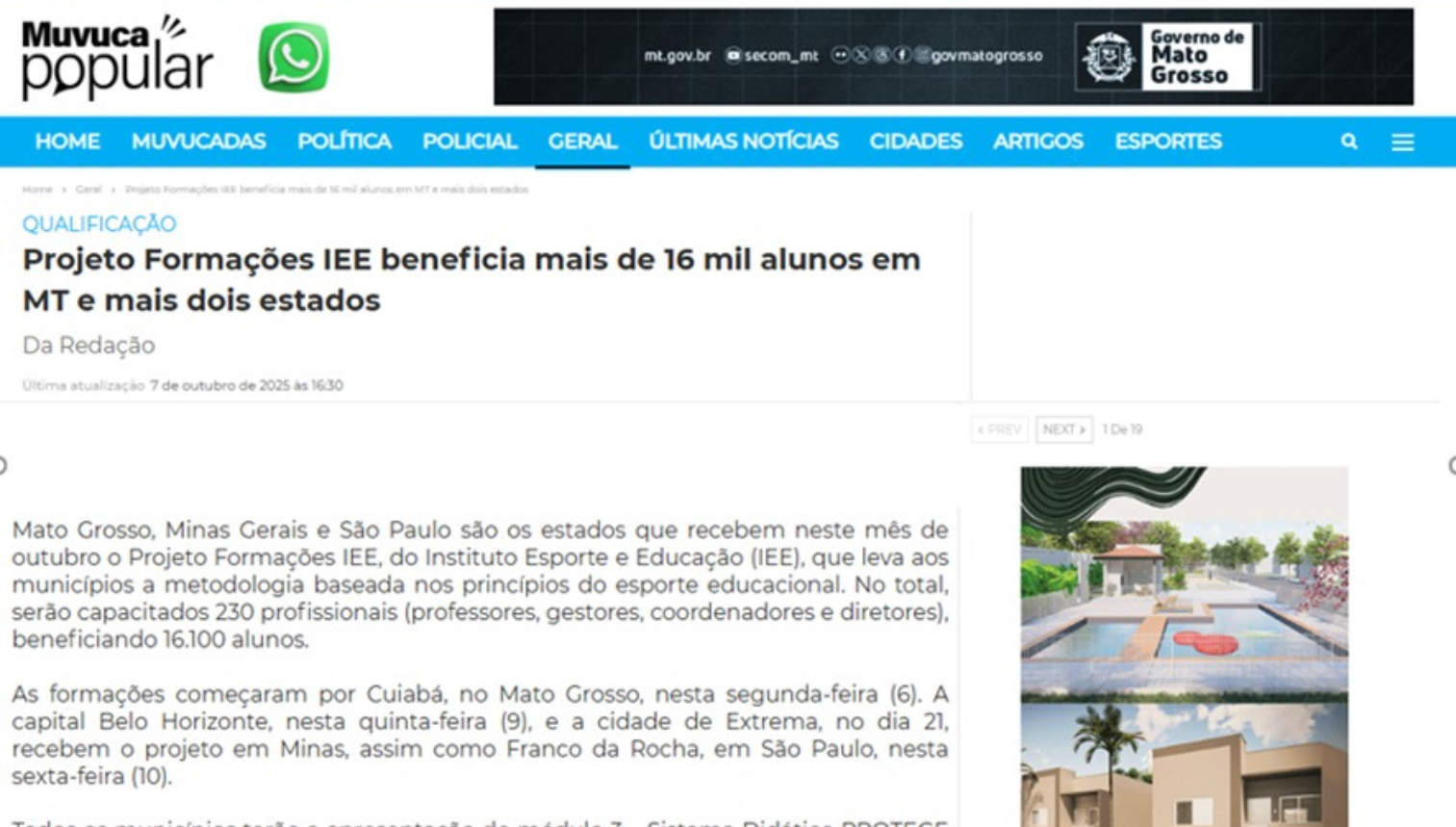 Desde agosto e até novembro, o Projeto Formações IEE levou seus diferentes módulos, baseados nos princípios do esporte educacional, para nove estados e 12 cidades: Amazonas (Manaus), Bahia (Camamu), Mato Grosso (Cuiabá), Maranhão (Bacabal), Minas Gerais (Belo Horizonte, Mário Campos e Extrema), Paraná (São José dos Pinhais), Santa Catarina (Chapecó), São Paulo (Valparaíso e Franco da Rocha) e Rio Grande do Sul (Passo Fundo). E os municípios de Osasco e Francisco Morato, na Grande São Paulo, receberam no mês de setembro mais um módulo do Projeto Formações IEE, em parceria com o Instituto Cyrela e a CashMe.