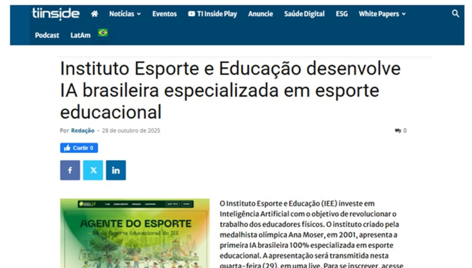 Referência no fomento da prática esportiva como ferramenta transformadora da sociedade, o IEE passou a investir em Inteligência Artificial com o objetivo de revolucionar o trabalho dos educadores, apresentando a primeira IA brasileira 100% especializada em esporte educacional.