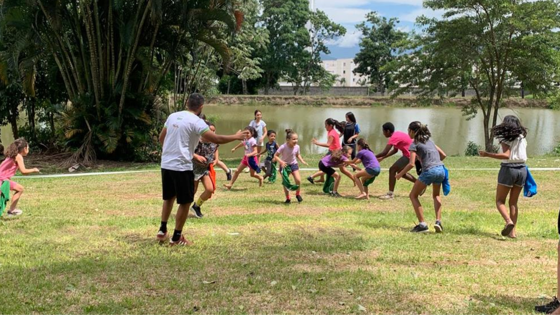 São jogos e brincadeiras que mudam de núcleo para núcleo, mas têm em comum a alegria, integração, prática de esporte e atividade física que fazem parte do Projeto Rede de Núcleos ao longo de todo o ano. E que, nas férias, não poderiam deixar de movimentar o dia a dia dos alunos.