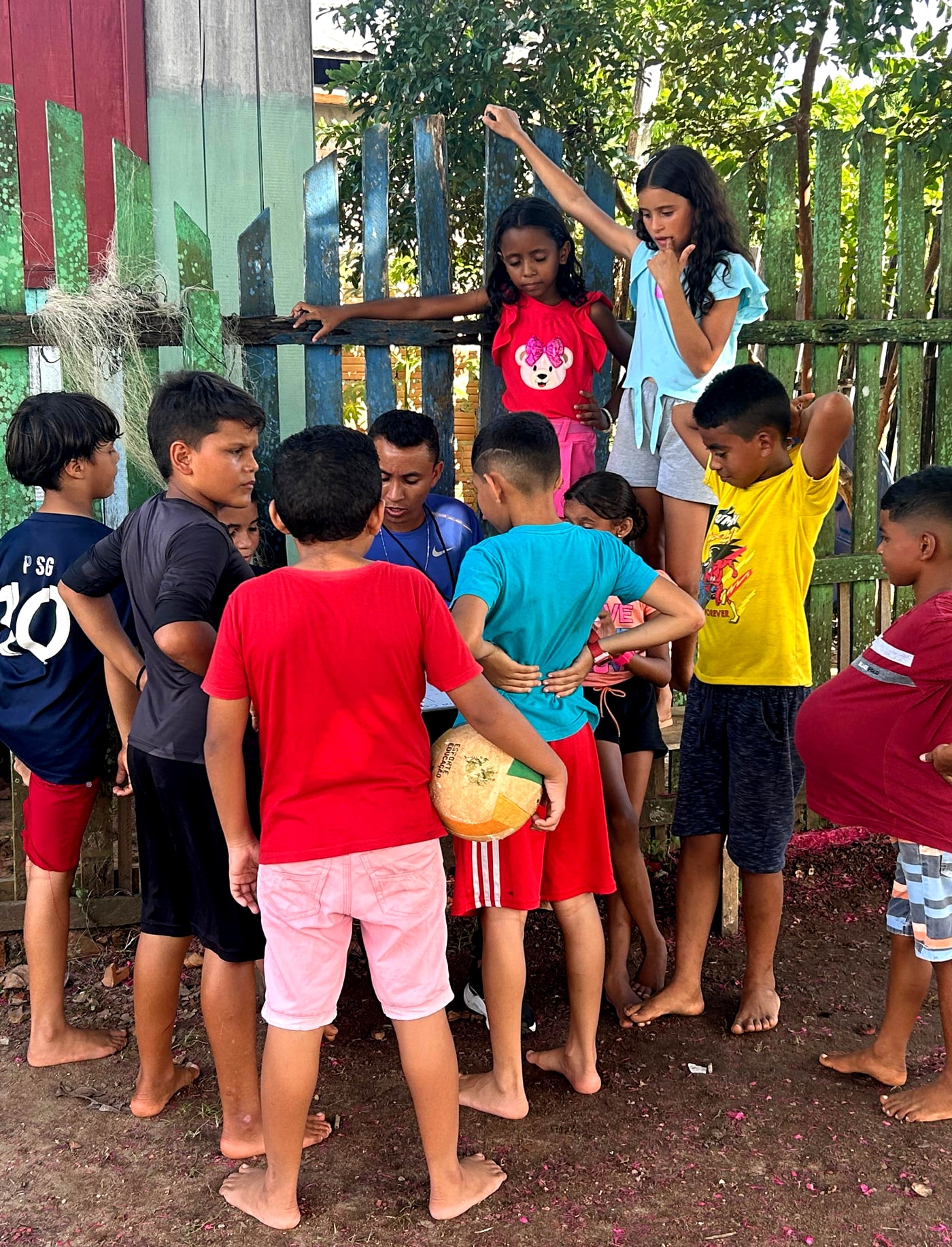 São 10 educadores e educadores locais atuando na organização, planejamento e aplicação das atividades para as mais de 800 crianças e adolescentes. E desses, 4 educadores são indígenas dos povos, Apurinã, Paumari e Jarawara.